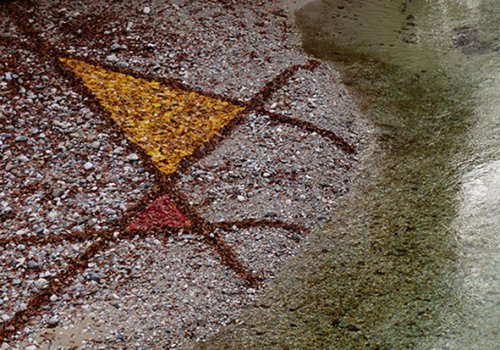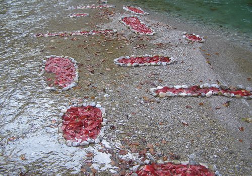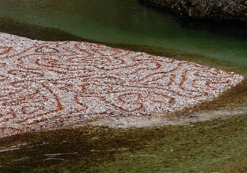 11 Jahre lang waren die Schotterufer der Schwarza für mich “Zeichenblätter”: Auf sie habe ich mit Naturmaterialien gezeichnet – bis 1500 m² große, vergängliche Bilder. Ihre Formensprache ist archaisch, ihre Themen sind aktuell: Es geht um die ZEIT (die uns fehlt) und die NATUR (um die wir uns sorgen).